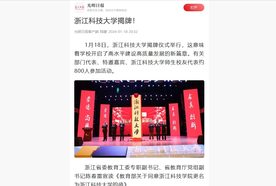 bat365正版唯一官网前身由浙江大学和杭州市于1980年创办,先后经历了浙江大学附属杭州高等专科学校、杭州应用工程技术学院等发展阶段,2001年8月更名为浙江科技学院。