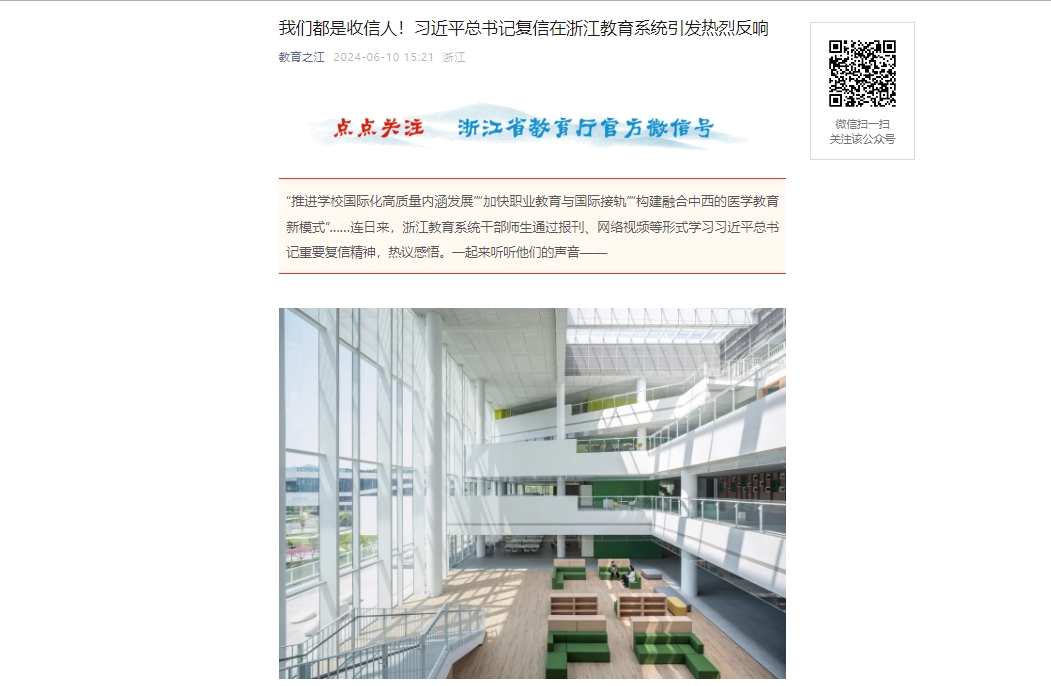 “推进学校国际化高质量内涵发展”“加快职业教育与国际接轨”“构建融合中西的医学教育新模式”……连日来,浙江教育系统干部师生通过报刊、网络视频等形式学习习近平总书记重要复信精神,热议感悟。一起来听听他们的声音——