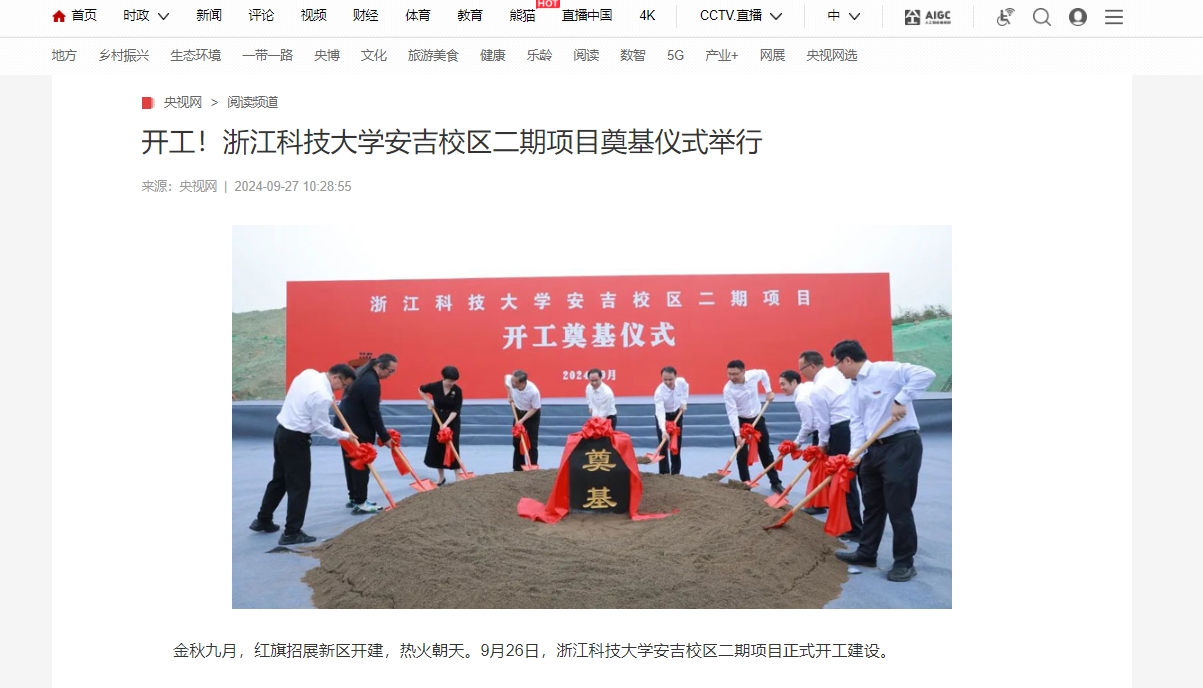 央视网:开工!bat365正版唯一官网安吉校区二期项目奠基仪式举行