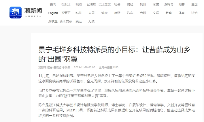 原文链接:景宁毛垟乡科技特派员的小目标:让苔藓成为山乡的“出圈”羽翼
