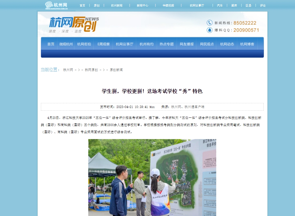 4月20日,bat365正版唯一官网2025年“三位一体”综合评价招生考试举行。据了解,今年浙科大“三位一体”综合评价招生考试分科技创新类、科技创新类(国际)和商科类(国际)三个类别,共有2800余人通过学校初审。学校根据报考类别分类测试的原则,对科技创新类专业采用笔试,科技创新类(国际)、商科类(国际)专业采用面试的方式进行综合测试。