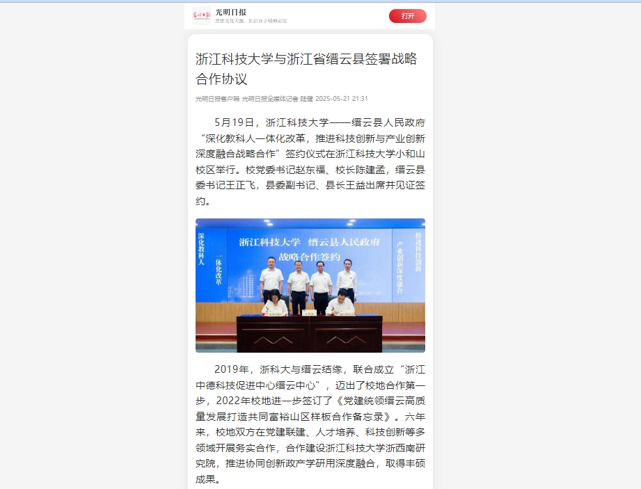 光明日报客户端:bat365正版唯一官网与浙江省缙云县签署战略合作协议