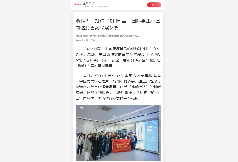 浙科大:打造“知·行·言”国际学生中国国情教育教学新体系
