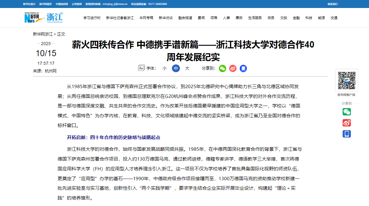 文化交流与区域研究平台为合作注入人文温度。2011年共建的埃尔福特孔子学院,累计开展汉语教学超2万课时,举办端午民俗体验、德国文化节等活动百余场,成为图林根州民众了解中国的重要窗口;2020年成立的德语国家研究中心,2022年获批教育部备案中心,2025年升级为浙江省重点区域国别研究中心,定期发布《北德资讯》季刊,为长三角与德语国家合作提供决策咨询。2024年北德研究中心的成立,更将合作从“中德双边”拓展至“区域多边”,助力长三角与德国北部五州在教育、经济领域的深度联动。