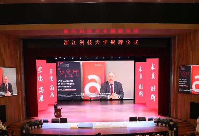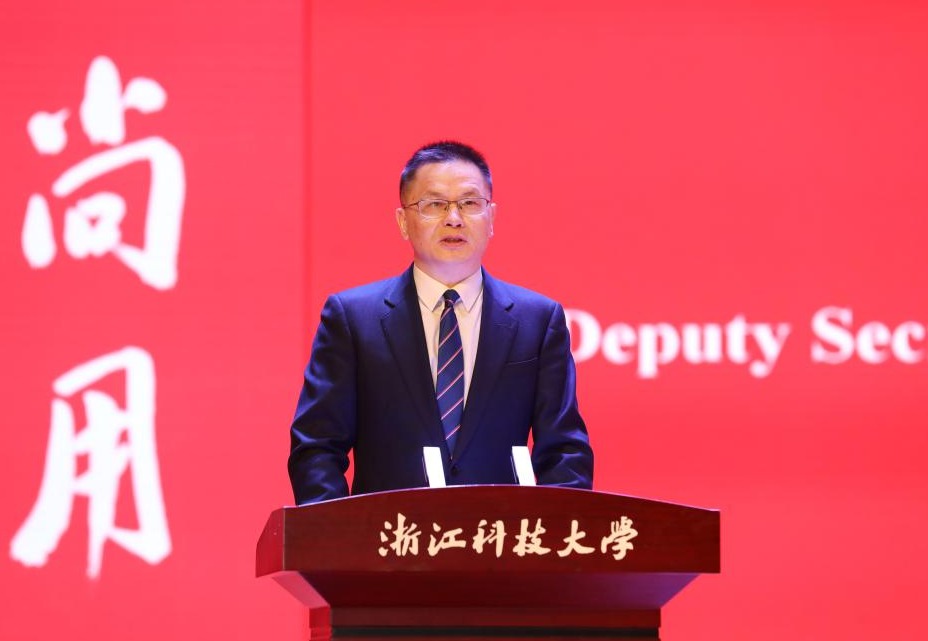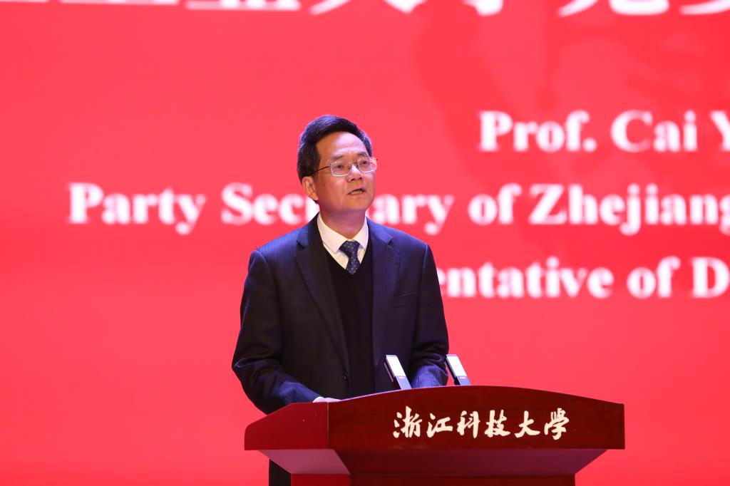 赵东福代表学校致辞。他回顾了学校发展历程,向上级部门和领导、社会各界对学校的关心与支持表示感谢。他说,多年来,我们坚持以“大学梦”为战略牵引,扎实推进内涵建设,着力强化特色办学,学校高质量发展的基础持续夯实。赵东福指出,站在新的历史起点,学校将抢抓机遇、顺势而为,以更名大学为契机,紧紧围绕省委省政府关于高水平大学建设和高等学校高质量发展的部署要求,以高水平建设为牵引,以申博“一号工程”为抓手,大力推进创新深化,强化科教融合,聚焦核心能力办大学,打造科技创新新高地;大力推进改革攻坚,强化校地合作,扎根浙江大地办大学,打造产教融合新范式;大力推进开放提升,强化国际合作,放眼世界办大学,打造国际合作新优势,努力建设一所与浙江经济社会发展相匹配、积极为区域发展作出卓越贡献的高水平科技大学,为奋力谱写中国式现代化浙江新篇章作出新的更大贡献。