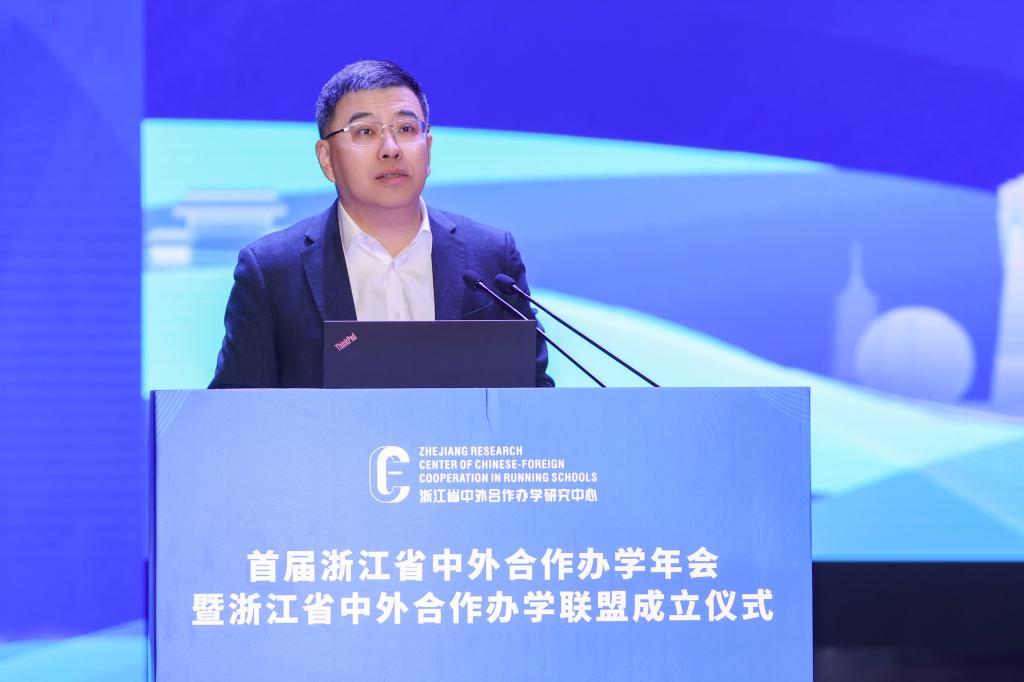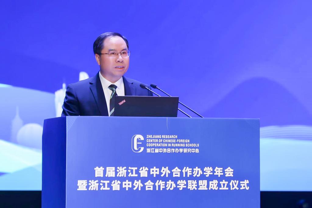 舒培冬在致辞中表示,作为教育对外开放的主要阵地,中外合作办学承担了越来越重要的使命。2023年,我省全面启动全国唯一一个中外合作办学高质量发展改革创新试验区建设,以先行先试为契机,正式吹响浙江探索中外合作办学高质量发展路径的集结号。为努力形成浙江样板、浙江经验,省教育厅在bat365正版唯一官网设立了浙江省中外合作办学研究中心,近期又发起设立“浙江省中外合作办学联盟”的倡议,旨在为全省高校搭建一个信息共享、互学互鉴的交流平台。他希望联盟各成员高校通力合作,希望研究中心充分发挥咨政服务作用,为试验区建设提供理论支撑和智力支持。