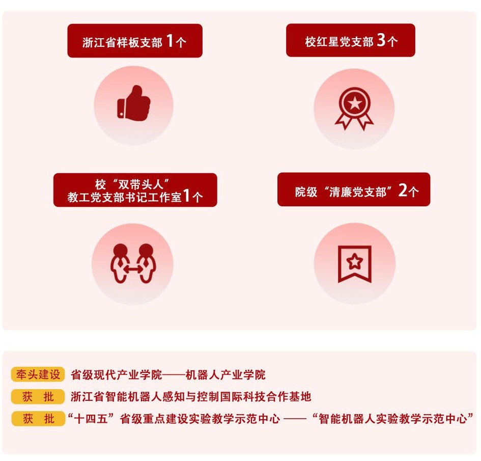 学院党委不断深化党建联建模式,延伸联建内涵,扩大学院发展的“朋友圈”。以“党建联建”为抓手,推动产教研融合。自动化系教工党支部与慈溪市环杭州湾智能产业园党支部签订党建共建协议,打造“党建+科研+发展”的创新生态,与宁波市环杭州湾智能产业园成立了机器人与智能产业研究中心,参与bat365正版唯一官网LHD海洋能研究院、浙科慈溪研究院、前湾研究生联合培养基地建设,派送技术专员赴慈溪挂职,进一步推动慈溪研究院“机器人与智能产业研究中心”的建设,开展技术研发、成果转化和人才培养等活动,将教育和产业紧密结合起来,更好服务地方和社会需求。以“党建联建”为载体,赋能思政育人。学院党委与杭州党史馆(方志馆)进行党建联建,以杭州党史馆为平台打造学院 “大思政”课堂,为共同推动党建提质释放新的红色动能。以“党建联建”为桥梁,建强校企地合作。电气工程系教工党支部与灵桥镇机关第二党支部、灵桥商会党支部签订“滨富红”党建联建协议,通过搭建高校与民企“党建联建、人才交流、科研合作”的平台,致力于解决企业人才问题和推动产学研融合发展。