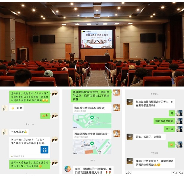 为确保测试工作顺利进行,学校先后召开了综合测试工作协调会、培训及动员会。按照计划,今年浙科大将通过“三位一体”在浙江省招收240名学生,综合评价招生测试分实验班、科技类、商科类三个类别进行。共有7364名考生报考,经学校书面评审和缴费,2198位考生入围综合测试。测试当天,校党委副书记张日向前往考点,检查指导工作。