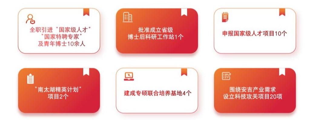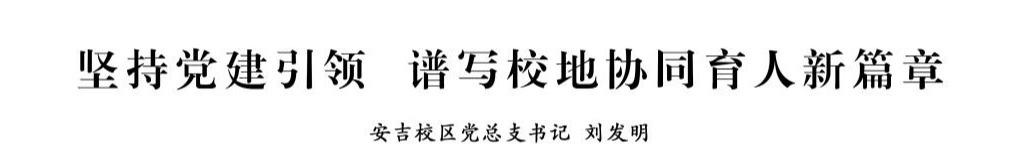 大力强化改革创新,校区通过党建联建共建,推动两校区、安吉校区与安吉县的紧密“协同”,以服务求支持,以贡献求发展。加大与安吉县各部门的沟通联系,深化校地融合,更好发挥安吉校区“桥头堡”作用。联合学校保卫处、资产处、后勤服务中心,与安吉县委党校、安吉县公安局、安吉县综合行政执法局、安吉县司法局、孝源街道等开展党建联建,实现校地共享共融、共同发展,共建平安校园、绿色校园。坚持公益实践育人,与地方公益组织合作,建立实践基地,定期开展志愿活动。无中生有,探索建立安吉研究院,与安吉地方政府部门、企业紧密互动,已全职引进国家级人才及青年博士10余人。通过研究院平台,成功创建省级博士后科研工作站,申报国家级人才项目10个、“南太湖精英计划”项目2个,建成专硕联合培养基地4个,联合申请发明专利、软著等知识产权3件,为县内企业提供各类职业技能培训10余次,累计参与培训人数达150余人次。开展创业项目3个,围绕安吉产业需求设立科技攻关项目20项,有力促进校地融合上层次上水平。