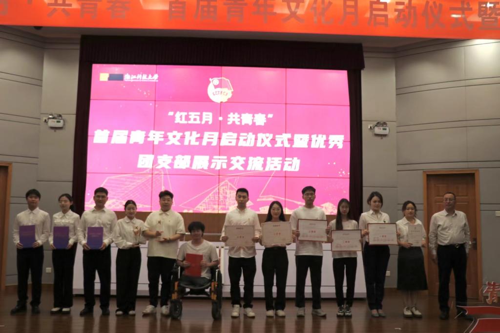 与会嘉宾共同启动首届青年文化月。活动对2023年度省级以上获奖集体和个人、优秀团支部和团员青年进行表彰。