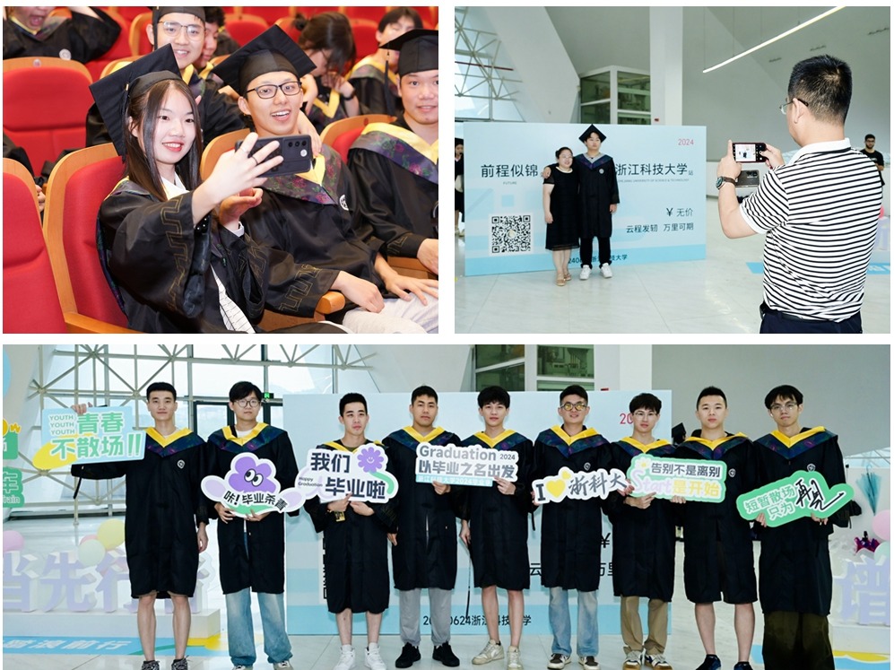 毕业生代表、经管学院本科生朱伟伟和信息学院研究生范晓敏,深情讲述了自己与浙科大相遇、在浙科大成长、从浙科大出发的经历,表示将带着老师的嘱托和母校的期许,带着真诚与热血继续前行,用努力书写无限可能。国际学院留学生丹尼表达了对母校及师长的感激与惜别之情,表示将以实际行动为促进国际友谊和中外文化交流贡献自己的力量。