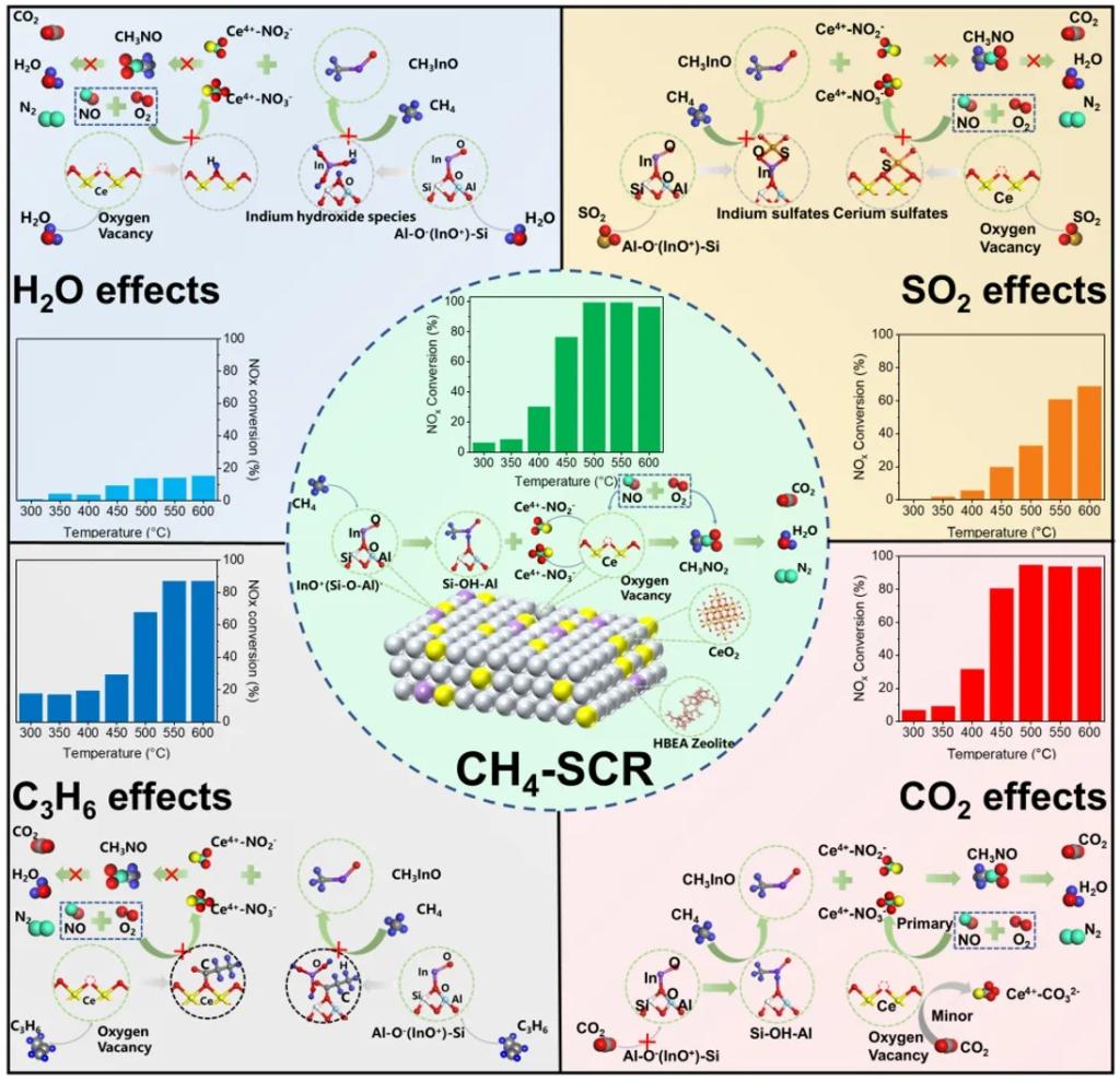 近日,bat365大气污染控制团队针对燃气发电机组烟气氮氧化物(NOx)污染治理问题,在环境与能源领域国际高水平期刊《Applied Catalysis B: Environment and Energy》在线发表了题为“Reaction and deactivation mechanisms of a CeIn/HBEA catalyst with dual active sites for selective catalytic reduction of NOx by CH4”的研究论文(点击阅读)。环境与资源学院硕士研究生冯博和赵亭嫚为论文共同第一作者,陈建孟教授和施赟讲师为论文通讯作者,bat365正版唯一官网为第一单位。