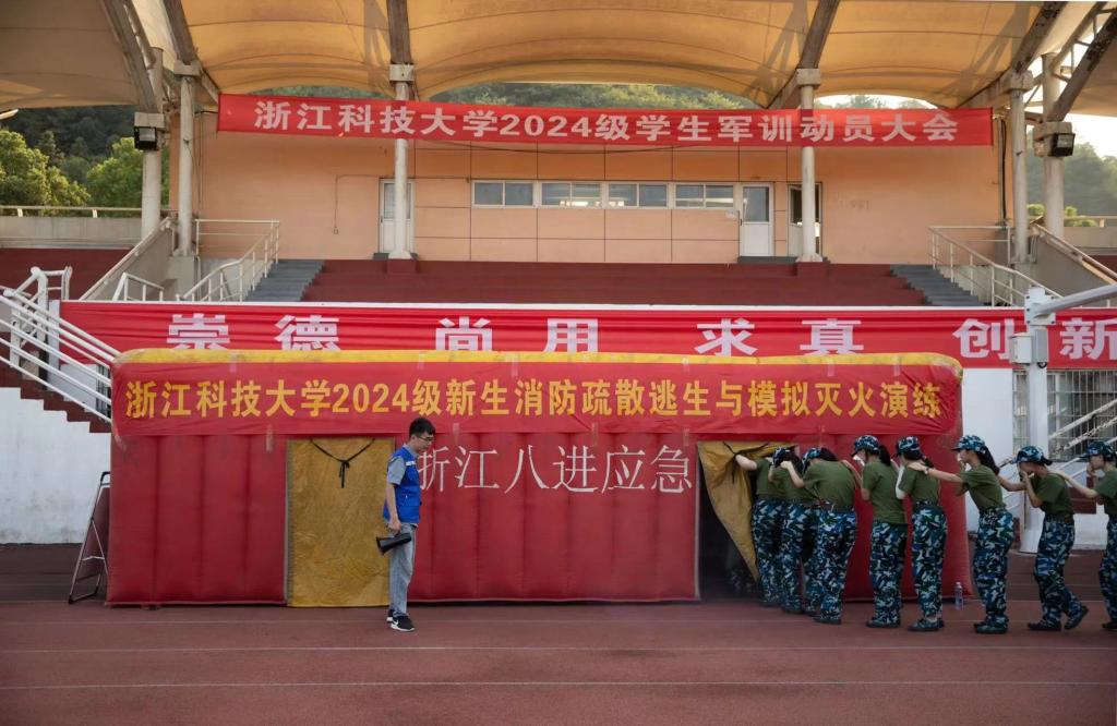 4100余名参训学生编为1个团、5个营、67个连,在武警杭州支队教官和大学生退役教官的带领下进行训练。不畏高温,同学们完成军事技能、模拟射击等训练,进行军歌比赛、行军拉练等活动,学习军事理论、射击基础、急救医疗、消防安全知识等内容。