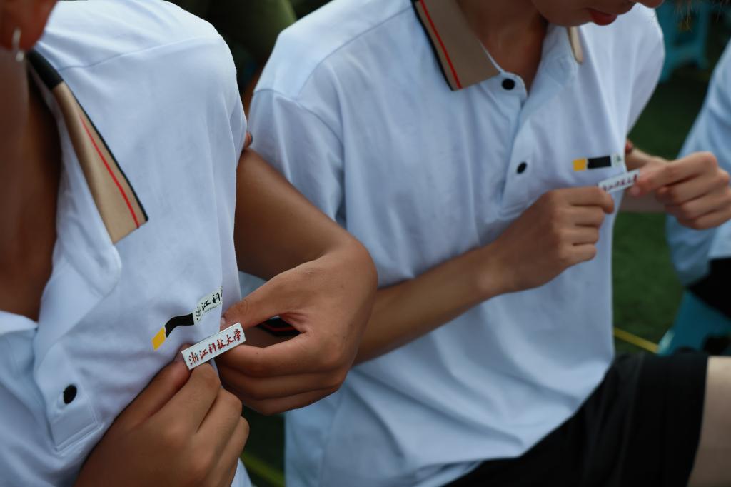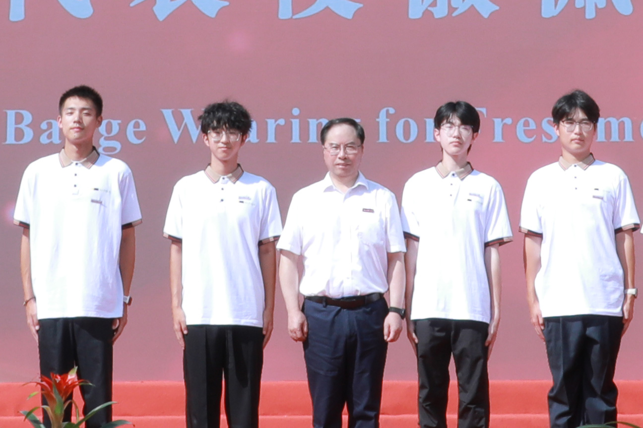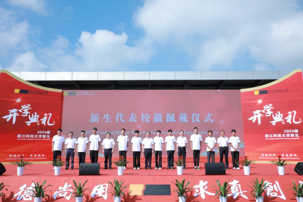 出席典礼的校党政班子成员为新生代表戴上“bat365正版唯一官网”校徽,全体新生起立自行将校徽佩戴于胸前,这一刻他们正式成为浙科大人,着笔谱写属于自己的青春篇章。