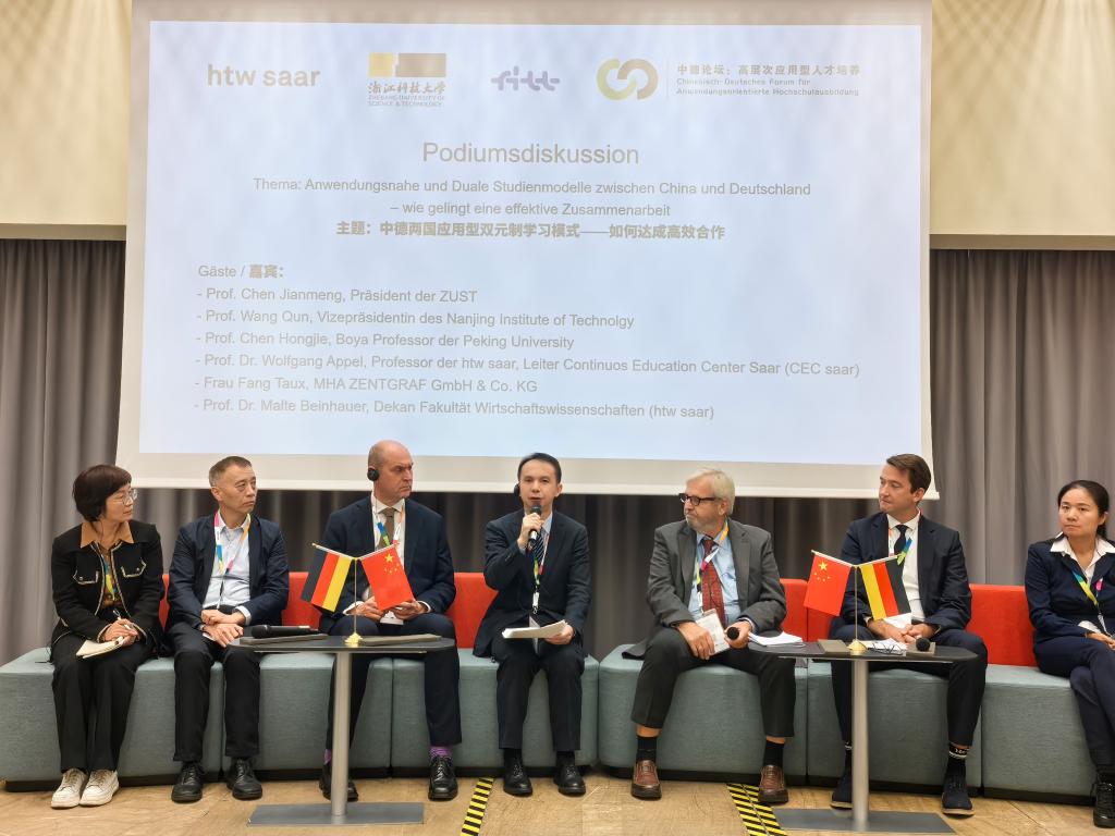 10月7日至11日,“中德论坛:高层次应用型人才培养(CDAH)”第九届论坛大会在德国萨尔布吕肯市萨尔技术经济大学举行。萨尔州司法部国务秘书延斯·迪纳,中国驻德国大使馆教育处公参黄伟,莱茵兰-普法尔茨州前州长、德国国防部前部长鲁道夫·沙尔平,德国高校国际合作联合会主席、萨尔技术经济大学校长迪特·莱恩哈特等出席会议。bat365校长陈建孟率学校代表团参加本次论坛大会。中德双方近30所高校及机构的60余名专家、学者聚焦“中德两国应用型双元制高等教育模式——产业需求与教育需求”主题进行深入交流。