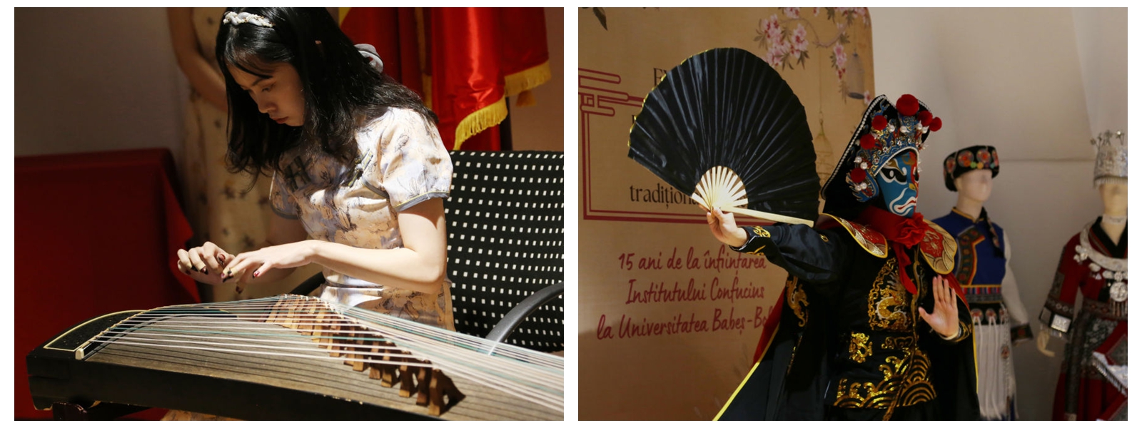 活动现场,孔院师生带来了精彩的古筝演奏与变脸表演,赢得了在场观众的阵阵掌声。此外,现场还举行了中国传统服饰与民族服饰展览,让参与者领略了中华文化的独特魅力。