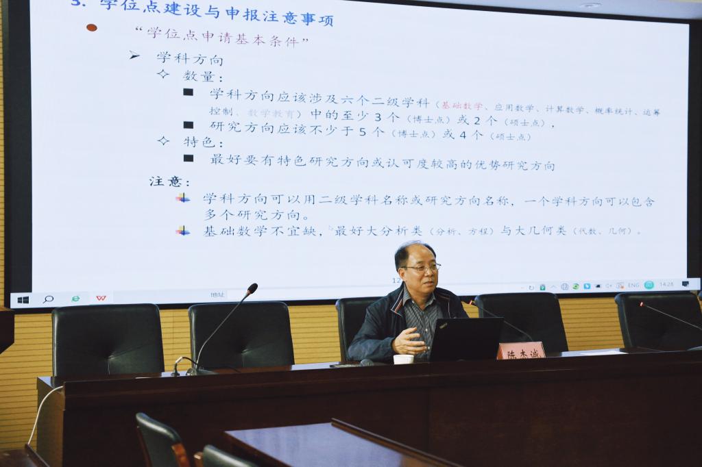 理学院邀请浙江师范大学杰出教授、国家级人才、浙江省登峰学科和浙江省基础学科负责人陈杰诚教授作题为《数学学位点与学科建设的一点体会》主题报告,副校长侯北平主持报告。理学院表示要以学校“学科登峰”主战略为指引,开展“学科筑峰”工程,以申博“一号工程”为牵引,以学科建设为主线,进一步浓厚学科建设氛围,着力加强基础学科、交叉学科和优势特色领域建设;要以学科建设大会为契机,学习先进经验、研讨学科建设战略,形成共识和合力,持续提升学院学科核心竞争力。