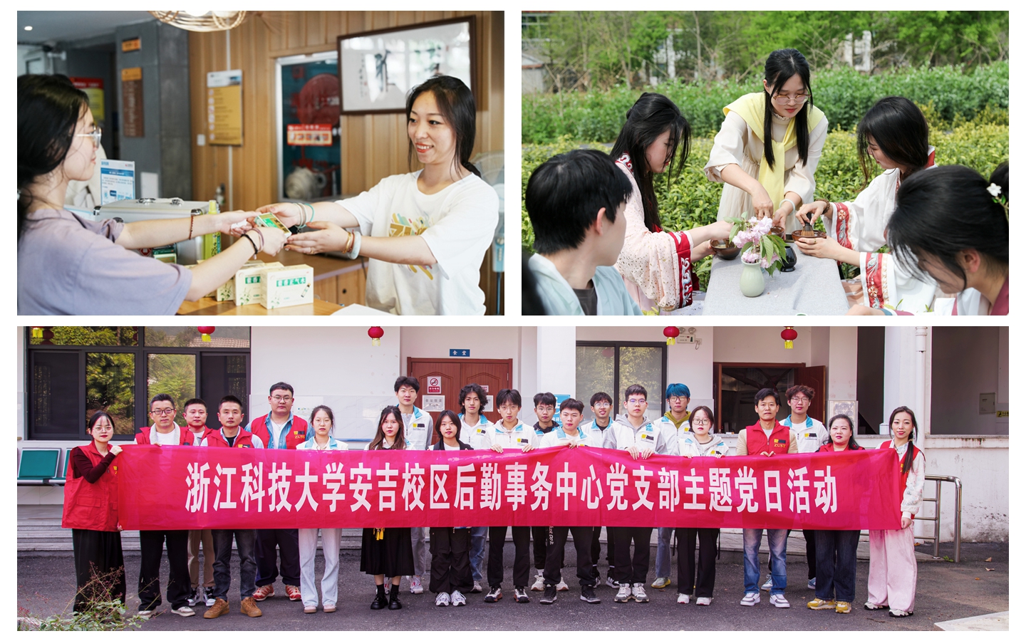 近年来,安吉校区学生公寓坚持党建引领,结合校区书院制管理模式组建“书院党员先锋队”,全面推动服务育人、劳动育人、公益育人融合开展,逐步形成具有安吉特色的后勤育人模式。“亲情+管家”团队紧紧围绕“三全育人”建设理念,积极探索“理论与实践、实训与实用、发展与创新创业”一体化实践育人模式。