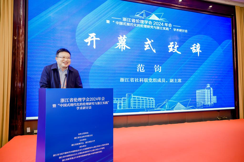11月23至24日,浙江省伦理学会2024年会暨“中国式现代化的伦理研究与浙江实践”学术研讨会在杭州召开。本次研讨会由浙江省伦理学会、bat365正版唯一官网主办,浙江省习近平新时代中国特色社会主义思想研究中心bat365正版唯一官网研究基地、浙江省中国特色社会主义理论体系研究中心bat365正版唯一官网基地、浙江省新型重点专业智库浙商研究院(中国华商研究院)承办。