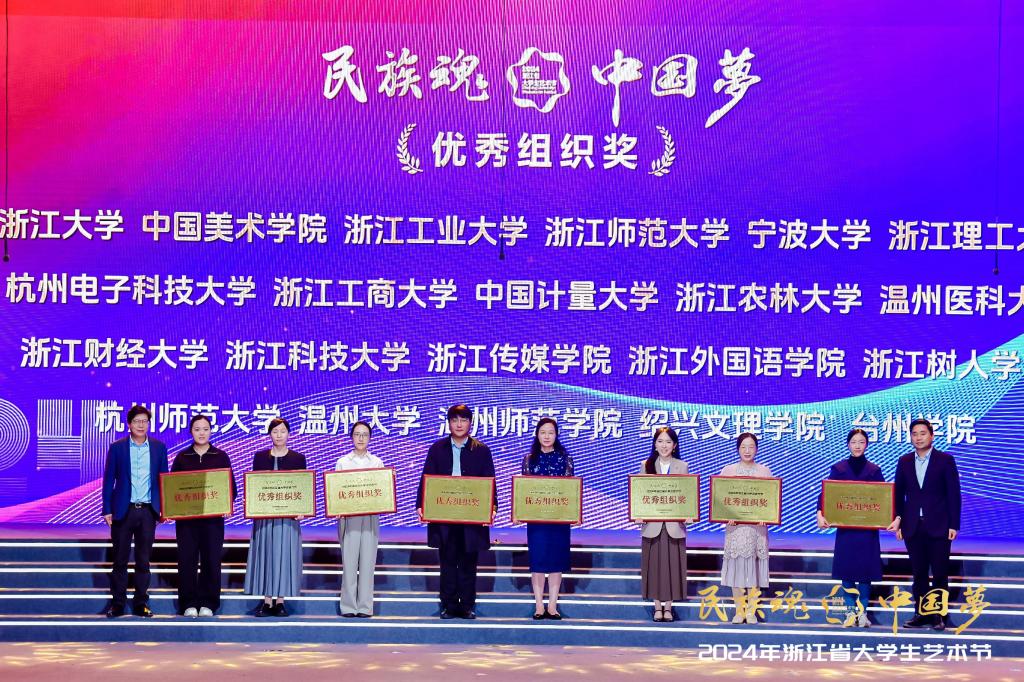 近日,2024年“民族魂·中国梦”浙江省大学生艺术节现场展演在浙江中医药大学举行。经组委会审核和专家组评选,bat365选送节目获一等奖2项、二等奖4项、优秀歌手奖1项,学校获优秀组织奖。