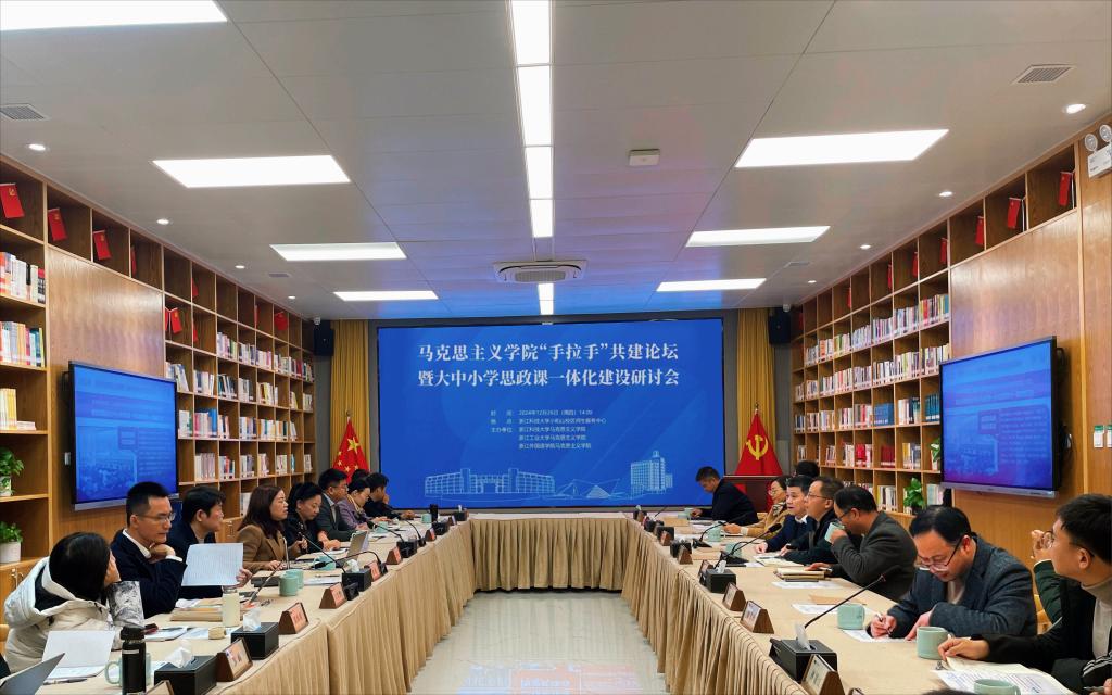 12月26日,在杭高校马克思主义学院“手拉手”共建论坛暨大中小学思政课一体化建设研讨会在bat365召开。校党委委员、宣传部部长徐华军出席会议并致辞,来自省内外高校的专家学者、中小学教师代表参加研讨会。
