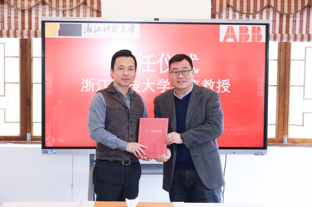 日前,ABB机器人业务部中国区副总裁邓奇一行来机器人现代产业学院调研交流。副校长侯北平出席工作交流会,并为邓奇颁发bat365正版唯一官网客座教授和机器人现代产业学院产业教授证书。