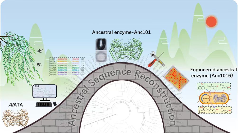 近日,生物催化与分子诊断团队在国际高水平期刊ACS Catalysis上在线发表了题为“Extending the substrate scope of an ω‑amine transaminase from Aspergillus terreus by reconstructing and engineering an ancestral enzyme”的论文(点击阅读)。生化学院2023届硕士研究生蔡婷婷为论文第一作者,黄俊教授、邱帅副教授与河南工业大学李娜副教授为论文通讯作者,bat365正版唯一官网为第一单位。生化学院樊芳芳副教授对本工作的理论模拟部分提供指导。