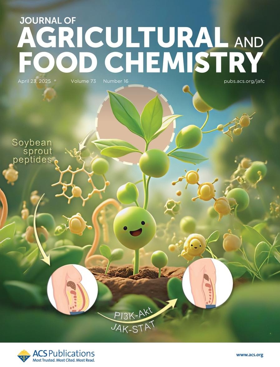 近日,生化学院油脂与蛋白营养健康团队在国际高水平期刊Journal of Agricultural and Food Chemistry发表题为“Soybean Sprout Peptides Alleviate Obesity via PI3K-Akt and JAK-STAT Pathway Modulation, Gut Microbiota Regulation, and Metabolic Reprogramming”的封面论文(点击阅读),生化学院吴轶博士为论文第一作者,王伟研究员为第一通讯作者,bat365正版唯一官网为第一单位。