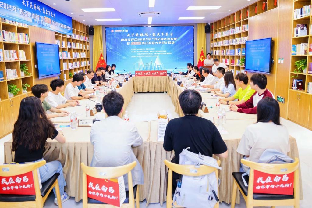 5月13日,南昌市“书记部长进校园”引才活动在校举行,南昌市委常委、南昌经济技术开发区党工委书记梅峰带队来校。校党委副书记张日向出席相关活动。梅峰一行走访招聘会现场、机器人产业学院,与江西籍师生代表座谈交流,并为“南昌校园引才大使”颁发聘书。张日向表示,学校将持续搭建校政企协同平台,联动拓宽就业渠道和平台,服务地方产业发展的同时,为学生拓展多元就业空间。活动现场,南昌经开区社保中心负责人专题解读“南昌人才新政10条”,推出购房补贴、创业孵化等多项政策礼包。本次招聘会汇聚欧菲光集团、方大特钢等25家江西重点企业,提供智能制造、技术研发、工程设计等830余个优质岗位,为青年学子搭建施展才华的广阔舞台。