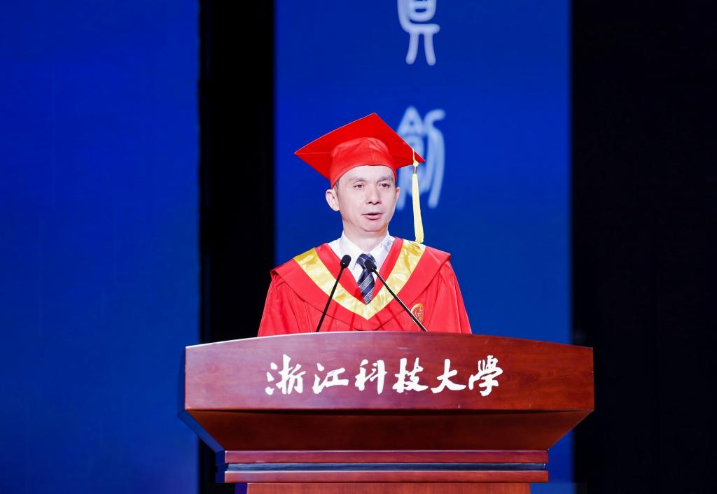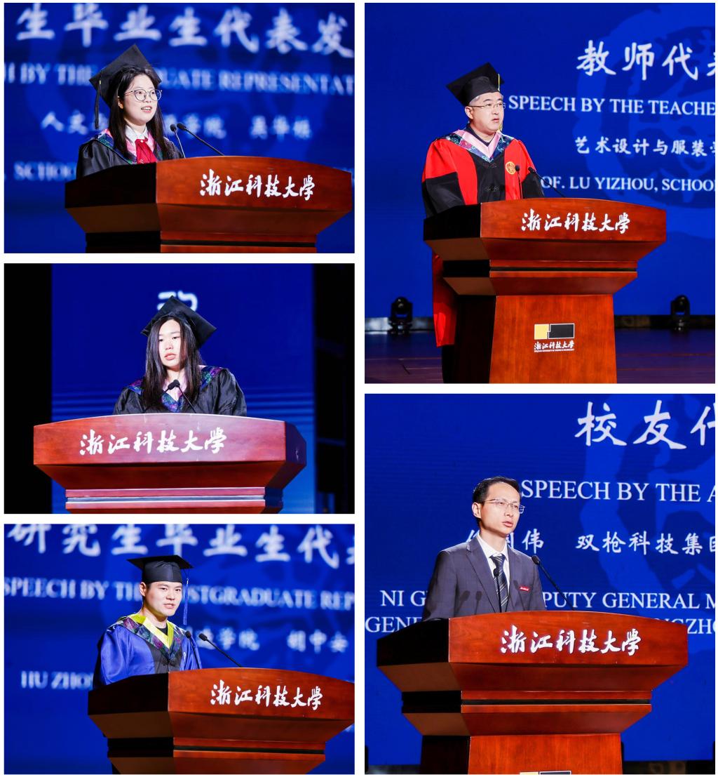 本科毕业生代表、人文外语学院吴华栋深情回顾四载浙科求学岁月,她表示未来将带着老师的嘱托和母校的期许,用自己的奋斗书写无悔青春。