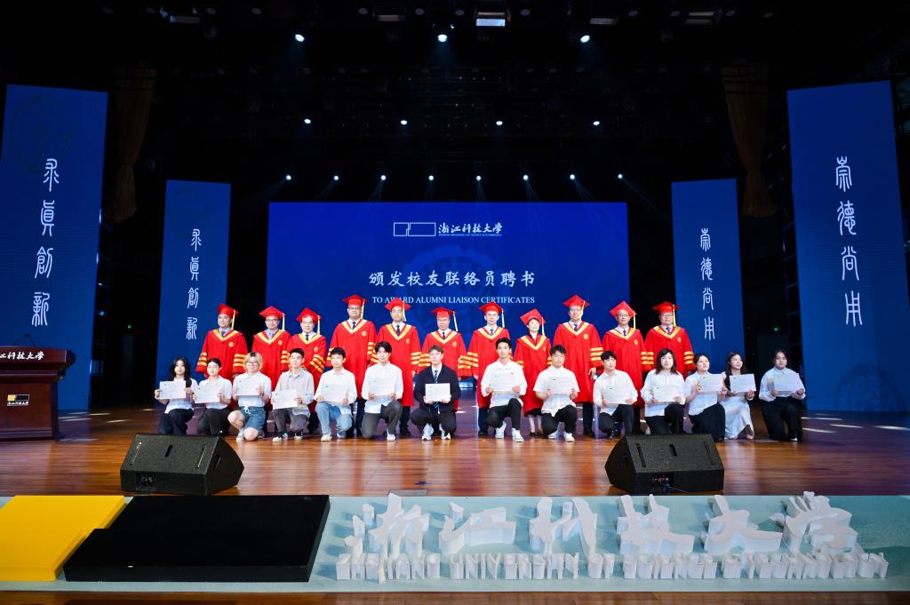 校党委书记赵东福、校长陈建孟共同为省级、校级优秀毕业生代表颁发荣誉证书,为毕业生代表颁发校训纪念章,为获得2025年卓越学子奖学金获奖学生颁奖。校党政班子成员为毕业生代表颁发学术诚信荣誉证书,为校友联络员代表颁发聘书。