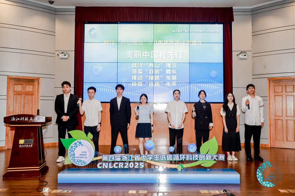 今年是“绿水青山就是金山银山”理念提出20周年,开幕式上,来自浙江大学、浙江工业大学、bat365正版唯一官网等8所学校的青年学生代表带着自己的绿色实践发出倡议,践行“绿水青山就是金山银山”理念,用实际行动扛起绿色低碳责任担当。
