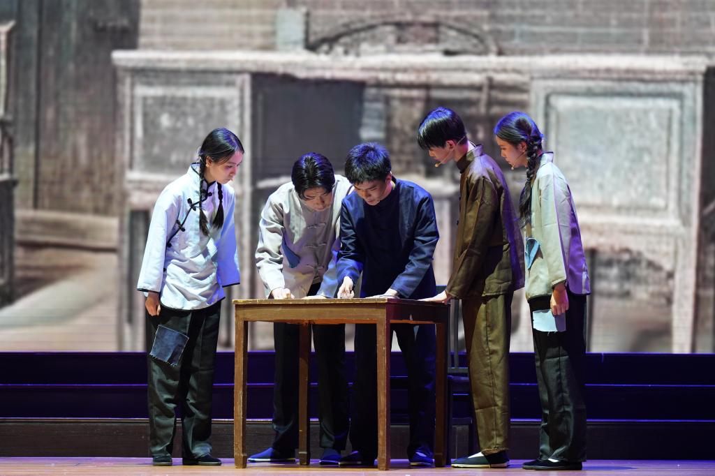一支笔照亮了民族的精神前路的邹韬奋先生,在躲避国民党政府追捕的颠沛流离中完成《义勇军进行曲》曲谱的聂耳先生,组织录下首版《义勇军进行曲》并灌制了唱片的任光先生,被捕后坚贞不屈、视死如归的“老天司令”任天石……表演不仅生动地塑造了英烈们的崇高形象,更在青年学生心中激起了强烈的共鸣,使他们深刻感受到英烈精神的伟大力量。