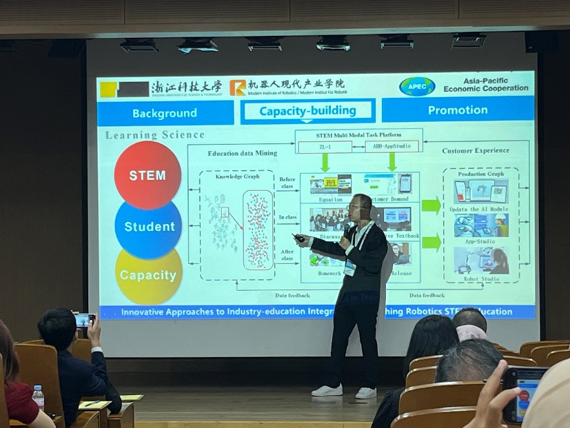 8月6-9日,机器人现代产业学院教师代表张勇博士应邀参加APEC青年STEM能力建设研讨会(2025 APEC YOUTH STEM CONFERENCE),并作“依托机器人现代产业学院的机器人STEM教育创新方法”主题报告。