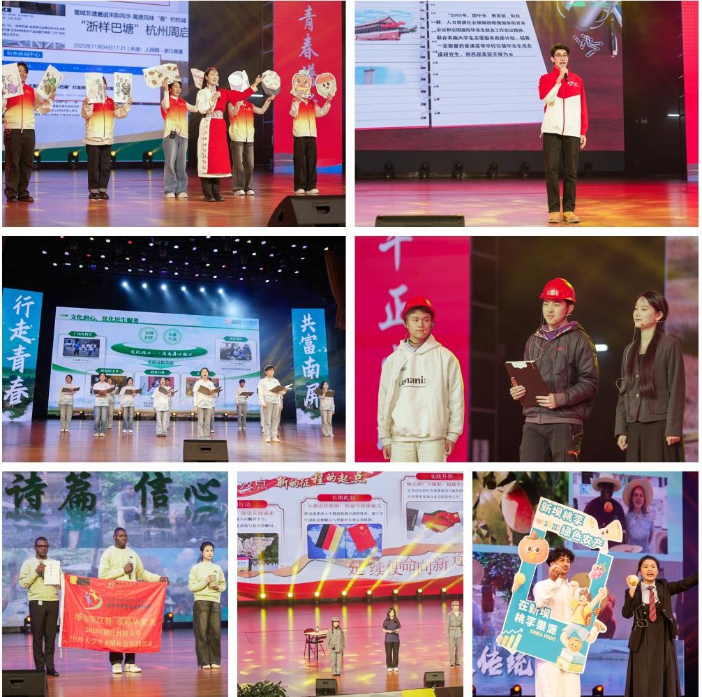 “我们理解了,规划不仅是塑造空间,更是编织未来的希望”“我们走进恩施土家族苗族自治州,在‘杭恩合作’的框架下,探索文化互鉴、发展共融的新路径”“从学校实验室到安吉,这些扎根乡村的创新,重塑了我对未来的想象”……一系列扎根中国大地、富有时代气息的思政育人实践成果集中亮相,生动展现了浙科大学子将课堂学习与乡土实践相结合、将青春热血奉献给国家和人民的动人画卷。据悉,今年,bat365共有122支社会实践团队,奔赴祖国大江南北。经过前期文本审核、专家评选,10支社会实践团队荣获“十佳实践团队”称号,17位指导教师荣获“优秀指导教师”称号,建工学院、计算机学院、艺术学院获“优秀组织奖”。校党委原副书记、校关工委常务副主任胡浙平等嘉宾为获奖团队颁奖。
