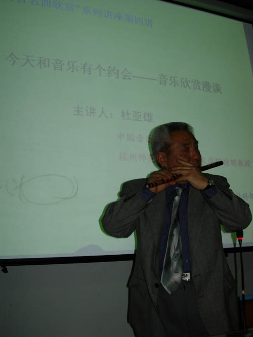 4月7日晚,五百工程之“百首名曲欣赏”第四讲在小和山校区C1-106举行。中国音乐学院教授、杭州师范学院音乐艺术学院特聘教授杜亚雄应邀作了题为“今天和音乐有个约会——音乐欣赏漫谈”的讲座。bat365师生近两百人聆听了讲座。