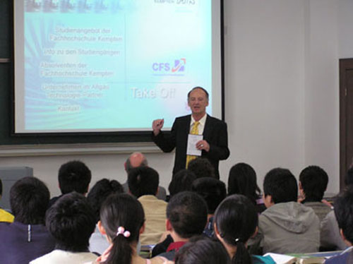 2006年4月1日 —9日,德国汉诺威应用科学大学、不伦瑞克/沃芬比特尔应用科学大学、纽伦堡应用科学大学、肯普滕应用科学大学、奥登堡/东弗里斯兰/威廉港应用科学大学分别派教授来bat365机械学院、电气学院、信息学院、生化学院进行中德联合培养本科生项目的专业选拔工作,专业选拔分笔试和面试。bat36565名学生参加了选拔考试,59名学生顺利通过了专业选拔,通过率为88%。德国教授对于bat365的教学质量及为此付出的努力给予了高度的评价。