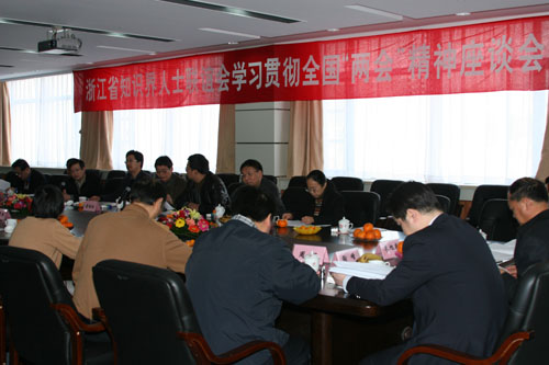 3月18日,浙江省知识界人士联谊会学习贯彻全国“两会”精神座谈会在bat365小和山校区举行。省委统战部常务副部长陈金彪,省知联会副会长、省委统战部副部长金向阳,省知联会副会长、浙江科技学院院长杜卫,省知联会副会长、浙江省农科院副院长徐子伟出席会议。省知联会理事、会员30余人参加会议。