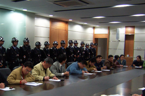 为贯彻省教育厅的有关要求,努力创建“平安校园”,提高学校有效处置群体性突发事件的能力,3月23日晚,浙江科技学院在小和山校区组织了一次群体性突发事件演练活动。这次演练的主要目的是检阅学工系统,发生重大群体性突发事件后,相关职能部门、二级学院的快速反应能力和信息网络畅通情况。这次演练领导小组下设学校值班干部考核组,保卫值班干部与校卫队考核组,职能部门考核组,学院总支分管学生工作副书记考核组,辅导员考核组等。校处理突发事件工作领导小组组长、校党委书记徐志平,院长杜卫,校处理突发事件工作领导小组副组长、校党委副书记胡浙平,副院长陈根芳出席并指导了演练全过程。