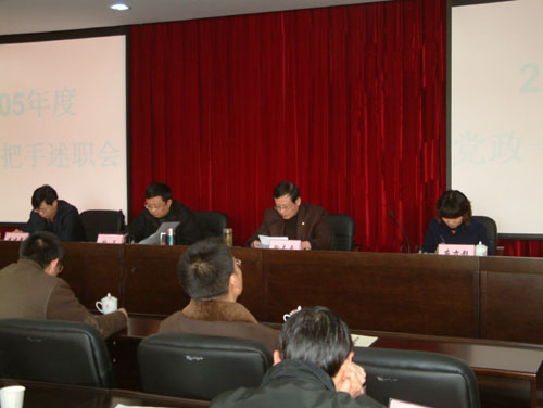会上,应方彩作了动员讲话,强调了这项工作的目的和重要意义。李建章对bat365民主测评工作作了具体要求。学校党委书记徐志平、校长杜卫分别作了年度总结报告。与会人员以无记名方式对学校党政“一把手”2005年度总结报告进行了民主评议,并对校领导班子成员进行了民主测评。