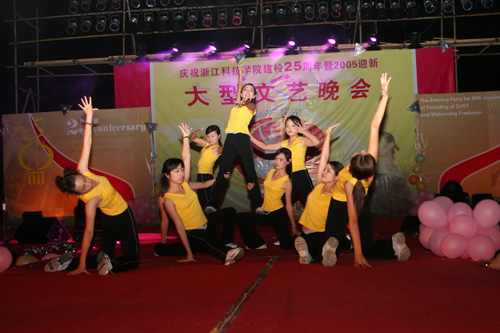 整台晚会融歌舞、相声、小品、戏剧等众多艺术形式为一炉,充分展示了浙科院人的青春活力和文化底蕴。晚会由省级媒体著名主持人戴冰寒、石磊,校友屠立达、在校学生雷莉主持。晚会气氛热烈,精彩纷呈,一首首充满深情的歌曲、一段段展现科院魅力的舞蹈,表达了科院人对学校的深厚感情和美好祝福。现场升腾起绚烂的礼花,将会场笼罩在一片花海之中。学生演员还打出了“贺神六飞天,扬报国之志”的横幅,表达了青年学生立志勤奋学习、报效祖国的坚定决心。