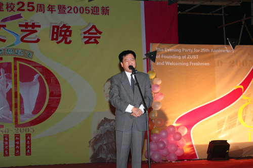 7点整,校铜管乐队雄壮的乐声拉开了晚会的序幕。胡浙平向晚会热情致辞。他代表学校党政向25年来关心学校发展的上级领导、校友和全体在校师生表示衷心的感谢和崇高的谢意。胡浙平说,25年来,在各级领导和代代师生的努力下,学校几易校名,办学水平和能力不断提升,现已发展成为一所以工科为主的多科性万人大学,并在办学实践中,逐步形成了具有国际化背景的高层次应用型人才的鲜明办学特色。在十六届五中全会胜利闭幕、神州六号载人飞船发射成功的时刻,我们迎来了建校25周年庆典。展望未来,我们信心十足,我们要继承前人的光荣传统和积累的丰富经验,为把bat365办成水平高,声誉好,特色鲜明的大学而努力奋斗。