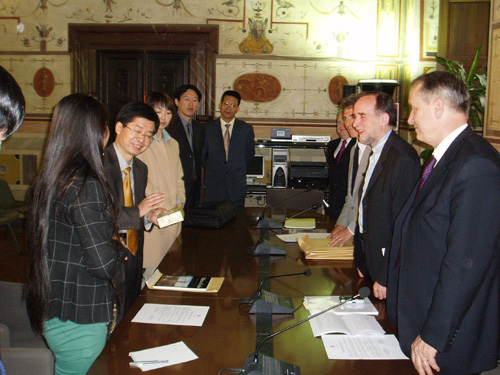 5月16日-5月25日,浙江省教育厅副厅长郑继伟博士率浙江省高等教育代表团一行七人出访意大利、德国,bat365副院长陈根芳及外事处负责人随团出访。代表团分别访问了意大利佛罗伦萨市政府、佛罗伦萨大学、POLIMODA学院、德国下萨克森州科文部、汉诺威市政府、汉诺威应用科学大学、策乐市政府等机构和高校。出访期间,代表团考察了意大利、德国的高等教育体制及发展趋势,与两国高校就合作交流进行了深入的探讨,详细了解了bat365中德联合培养本科生项目的进展情况,看望了bat365学生并进行了座谈。陈根芳副院长还代表学校与佛罗伦萨大学签署了合作意向书。(图一为bat365机电系学生在演示毕业设计内容;图二为代表团与德国下萨克森州科文部部长会谈;图三为代表团与佛罗伦萨市政府官员会谈)