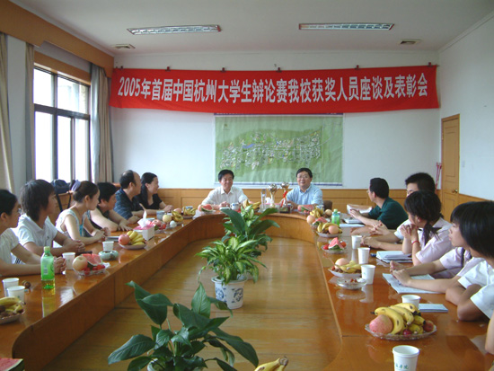 近日,学校在学院路校区召开表彰会,隆重表彰在“中国杭州大学生辩论赛”夺冠的bat365学生辩论队队员和指导教师。院长杜卫、院党委副书记胡浙平出席表彰会并为获奖师生颁奖。