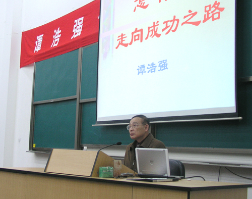 在回答 “作为计算机教育专家,为什么去做成才报告?”的提问时,谭浩强说,在建设中国特色社会主义市场经济的历史条件下,我深深感到,树立科学的世界观、人生观、价值观,学会怎样做人与做事,越来越成为当代大学生必须面对、必须解决好的最重要课题。因此,近年来谭教授应邀为全国各地大学生作了120多场“怎样走向成功之路”的主题演讲。
