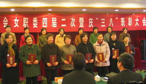 3月2日上午,省教育工会在杭召开了庆“三八”表彰大会。表彰大会由省教育工会主席、女职委主任秦素琴主持,省教育工会副主席陈勇宣读表彰决定。省总工会党组书记、常务副主席顾秀秀,省委宣传部常务副部长童芍素,省教育厅副厅长何杏仁等领导到会。到会领导发表了热情洋溢的讲话并向先进个人代表颁奖。此次全省教育系统受表彰的“事业家庭兼顾型”先进个人共110名。bat365机电系林江教授、计算机系刘云仙副教授受到大会表彰。(图中右二为bat365林江教授)