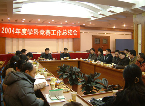 为总结2004年学科竞赛工作经验,探讨2005年学科竞赛工作思路,1月11日,学校召开了2004年大学生学科竞赛工作总结会。龚建立副院长出席会议并作了重要讲话.教务处、学生处、科研处、团委等职能部门负责人,各系、部教学主任,各科竞赛指导教师,2004年度省级竞赛获奖学生代表共七十余人参加了会议。