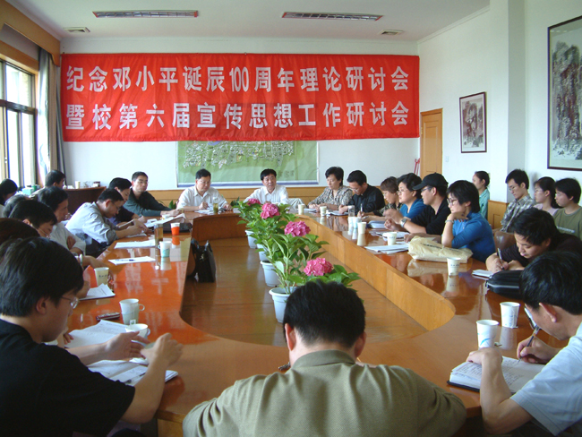 6月3日,bat365纪念邓小平同志诞辰100周年理论研讨会暨学校第六届宣传思想工作研讨会在学院路校区举行。学校党委副书记、学校思政教育研讨会会长胡浙平,副院长龚建立出席会议并讲话。会议由学校党委委员、组织部部长,学校思政教育研究会副会长黄丰平主持。学校思政教育研究会理事、各系辅导员、社科部部分教师及论文作者参加了会议。