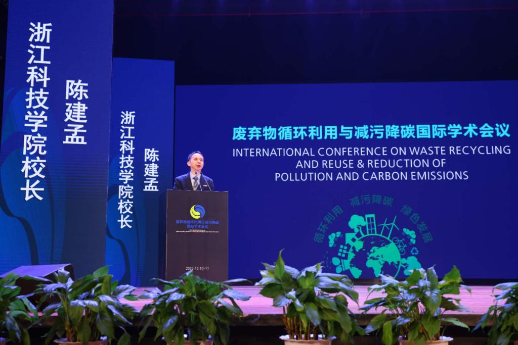 陈建孟代表学校向各位与会专家和代表表示欢迎与感谢,他简要介绍了学校发展概况。陈建孟指出“废弃物循环利用与减污降碳”国际学术会议的举办,是贯彻可持续发展战略、落实新发展理念的生动实践。他真诚期待各位专家充分发挥专业优势,聚焦解决废弃物循环利用中存在的重大难题,深入探讨、分享智慧,切实为实现减污降碳协同增效、助推碳达峰碳中和贡献智慧与力量。