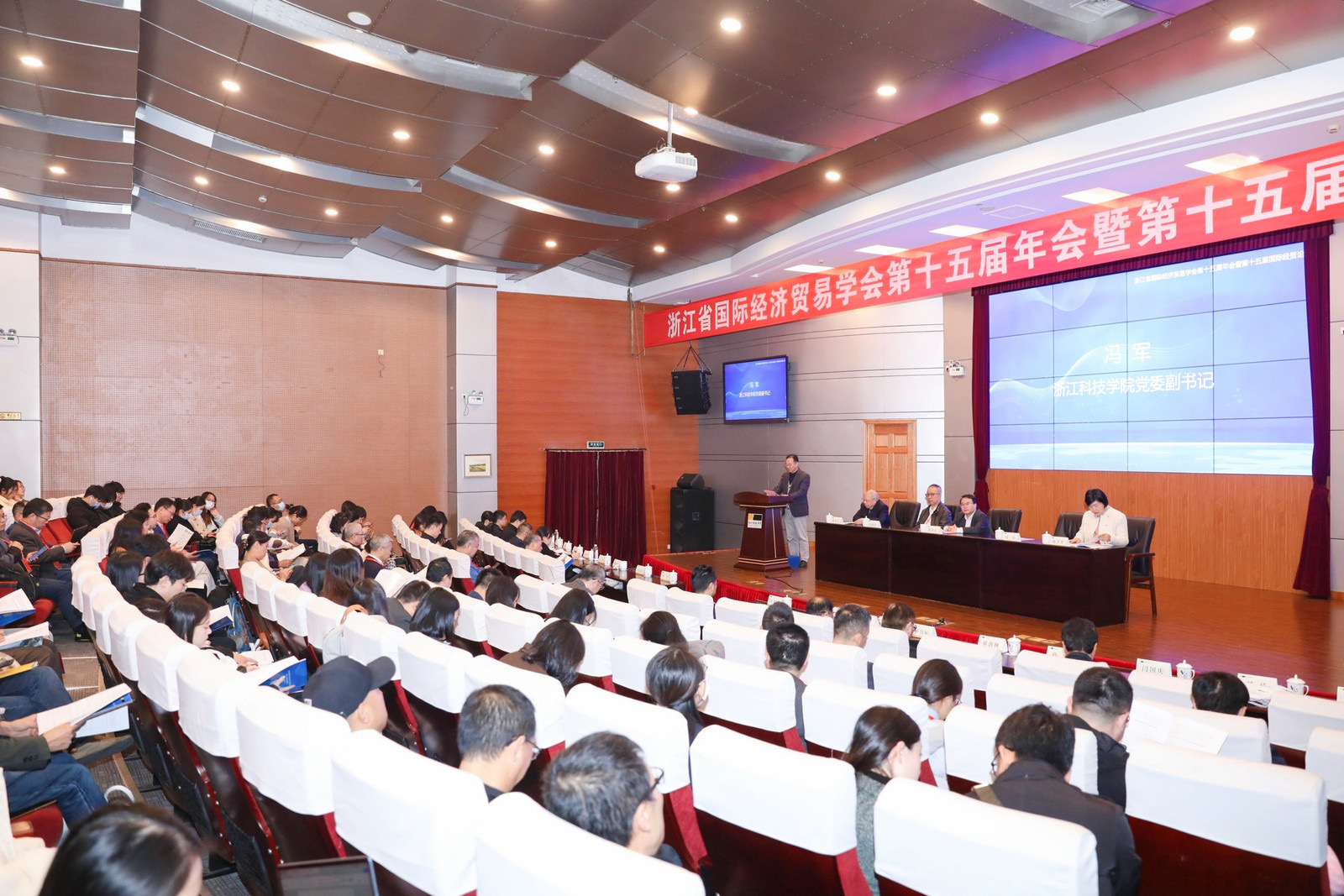 12月8-9日,浙江省国际经济贸易学会第十五届年会暨第十五届国际经贸论坛在bat365召开。本次论坛由浙江省商务厅指导,浙江省国际经济贸易学会主办,bat365经管学院、浙江省商务研究院、浙江大学开放型经济与发展优势特色学科承办。省内外知名专家,全省商务系统、各高校、科研院所等单位的200余位代表参加会议。浙江省商务厅、 浙江省国际经济贸易学会、bat365负责人出席开幕式并致辞。